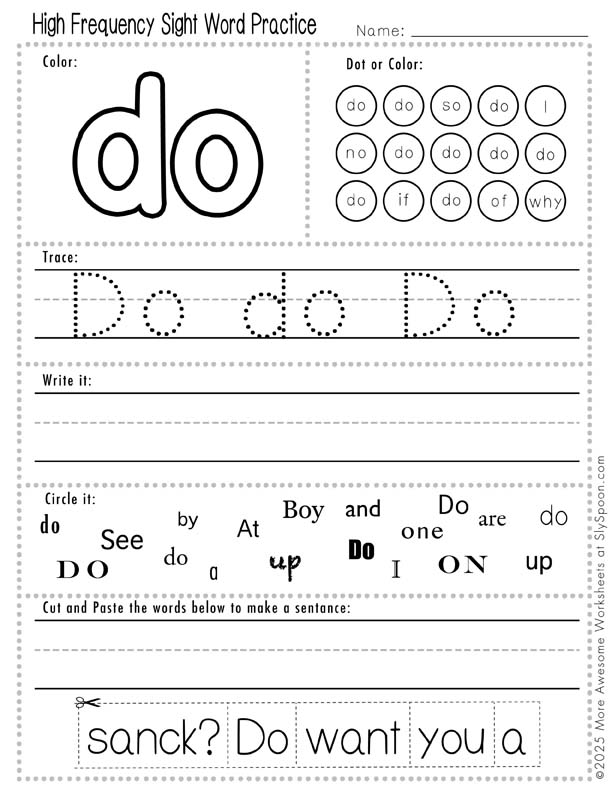 - Dot Marker Word Recognition: Using dot markers, kids can circle or highlight sight words, reinforcing their recognition through hands-on practice.