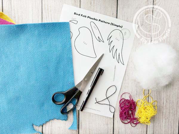 - Felt (in your chosen colors for body, wings, tail, legs and beak)