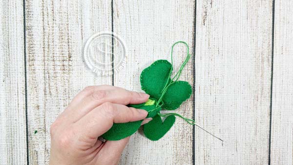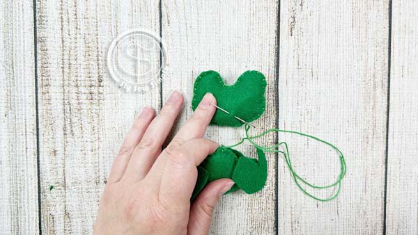 - Start by pushing your needle up through the felt from the back.