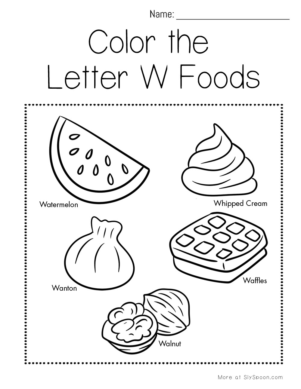 - Draw Your Favorite Letter W Food – Kids get to pick their favorite W food and draw it in the large space provided.