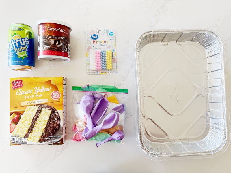 - A can of lemon-lime soda (so the cake can be made without eggs or oil)