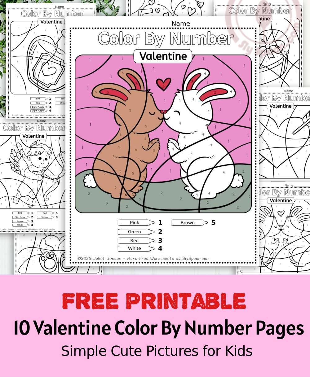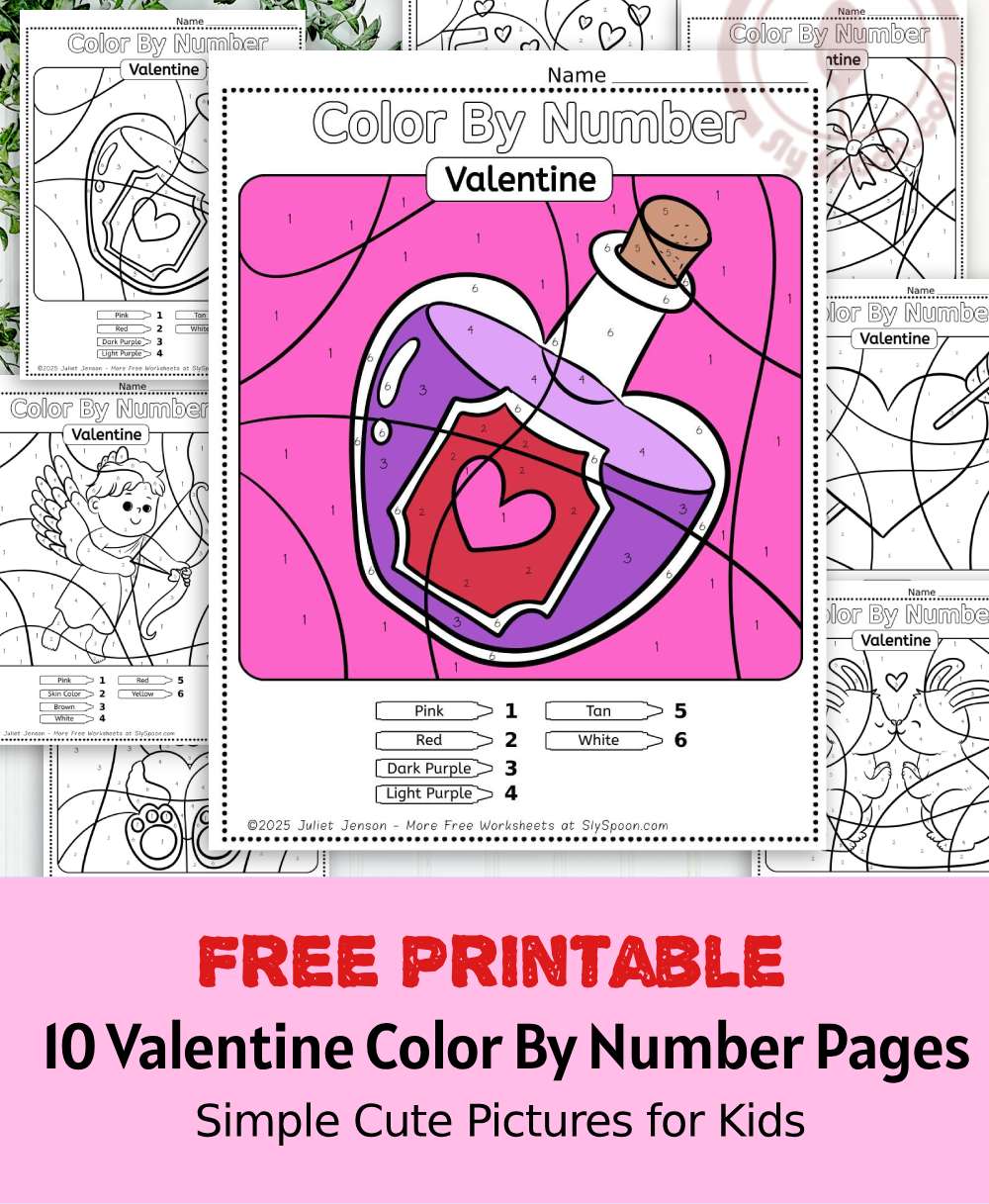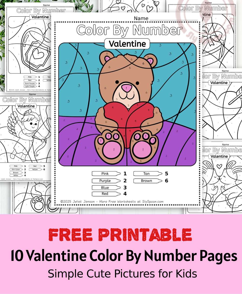 At Sly Spoon, I create free educational printables that are easy to use, kid-friendly, and classroom appropriate. These Valentine color by number worksheets are designed to support early learning while still feeling fun and festive.
