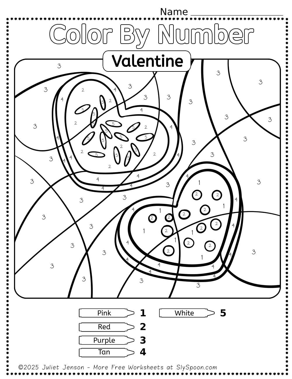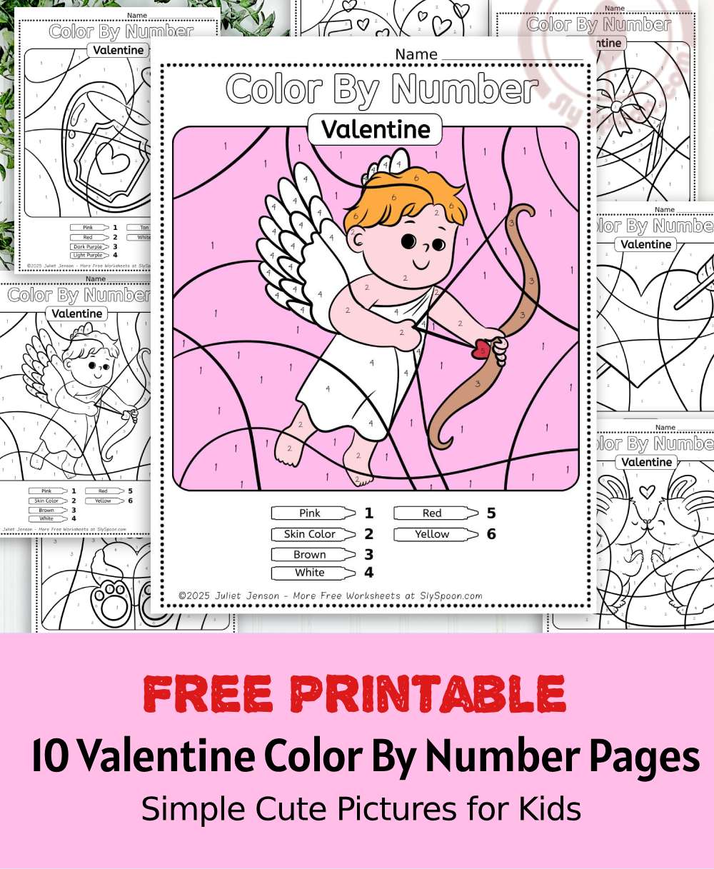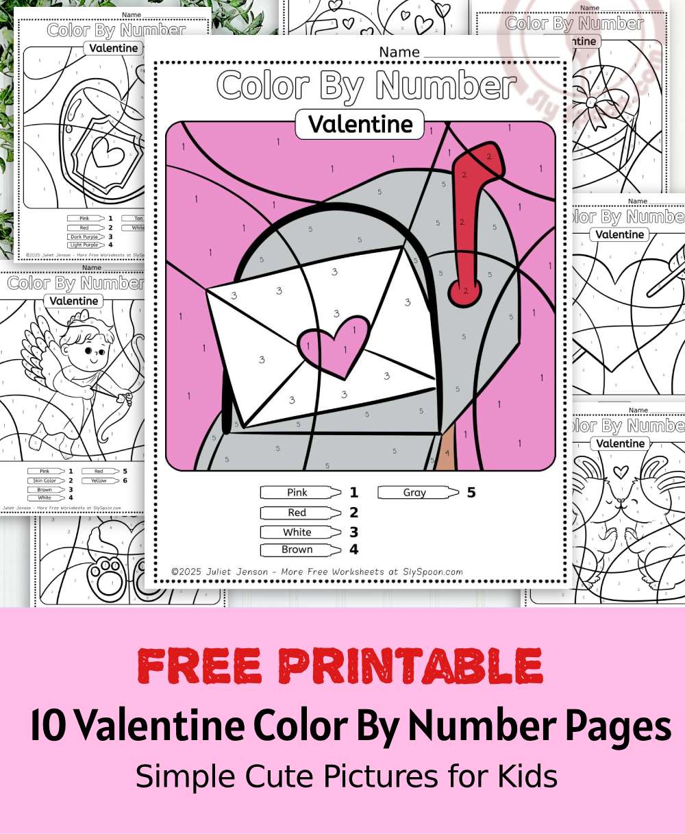 At Sly Spoon, I create free educational printables that are easy to use, kid-friendly, and classroom appropriate. These Valentine color by number worksheets are designed to support early learning while still feeling fun and festive.
