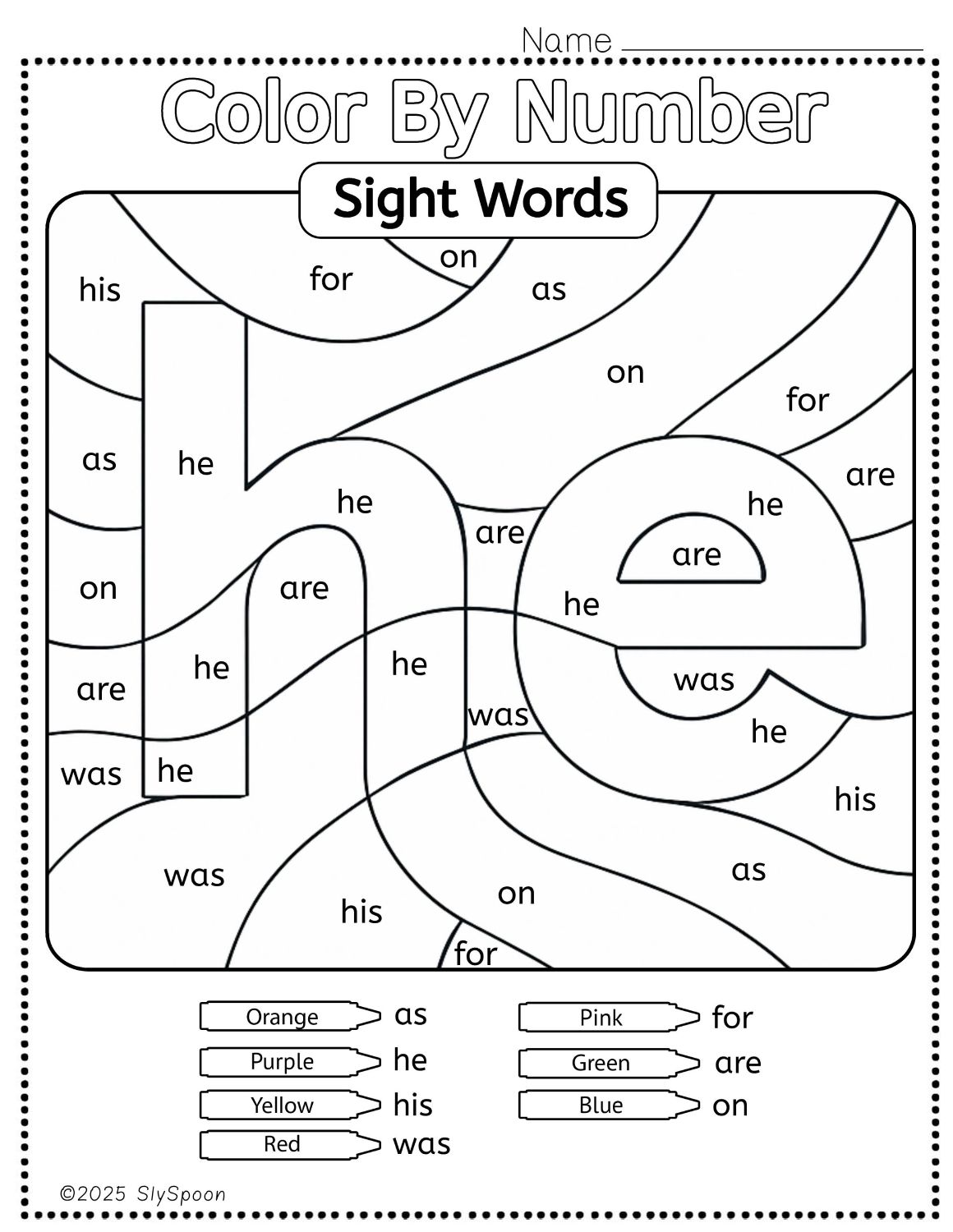A fun twist on color-by-number! Instead of numbers, each section contains sight words. When colored correctly, the word he appears as a hidden image. It’s a fun way to reinforce reading recognition and build focus.