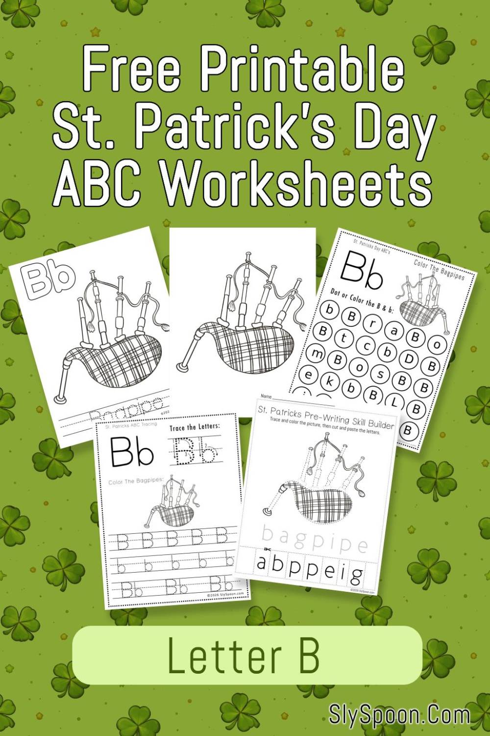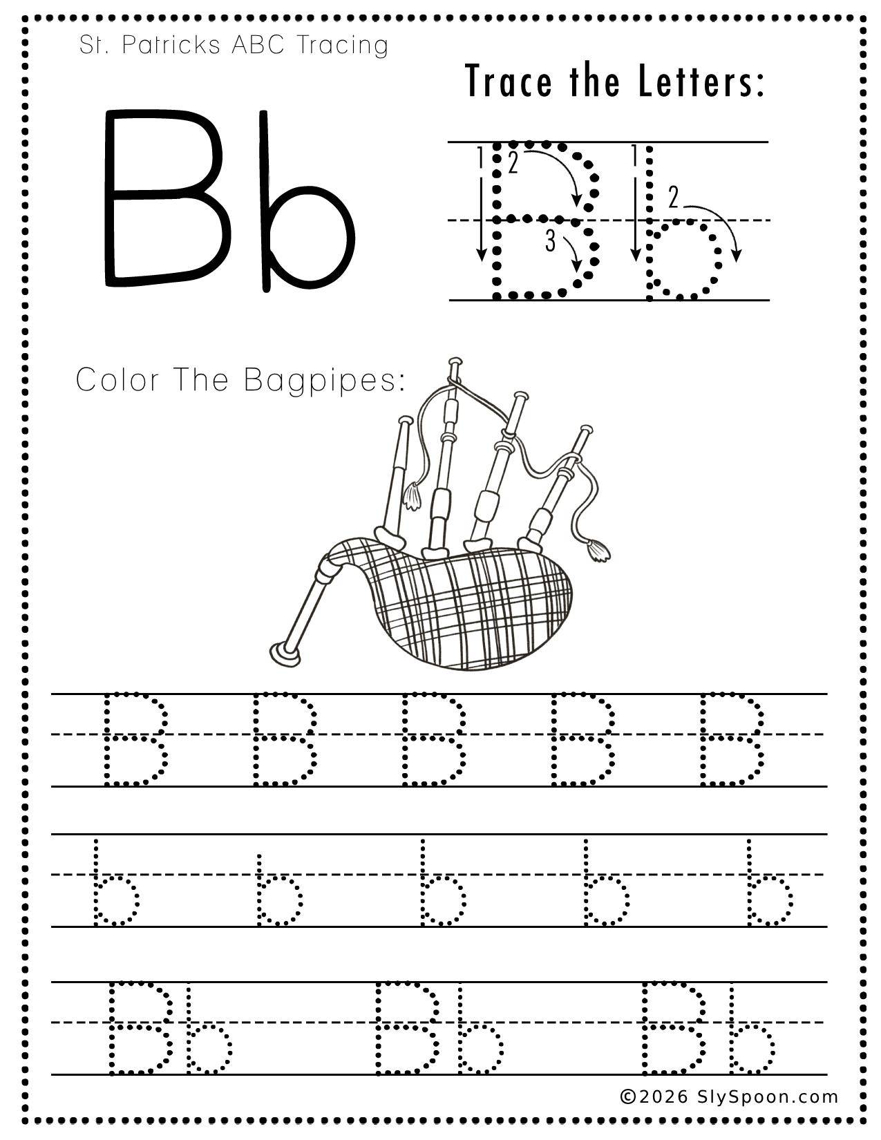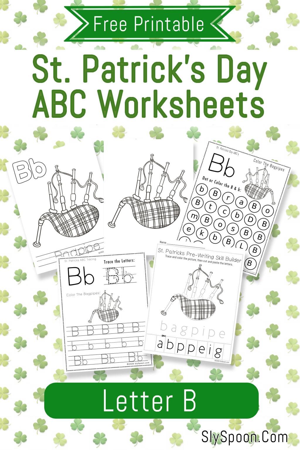 This post focuses on 5 free printable worksheets around the Letter B with a St. Patrick’s Day-themed bagpipes illustration. Bagpipes are a fun way to connect letter learning to holiday traditions—especially because you’ll often hear bagpipes at St. Patrick’s Day parades and Celtic celebrations.
