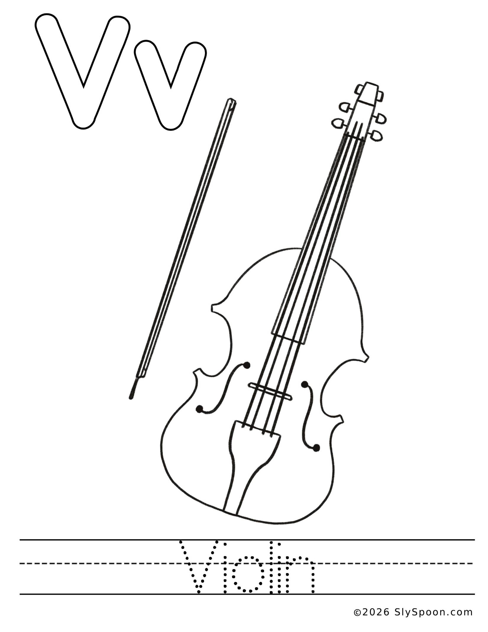 - Trace the word “violin” using dotted letters