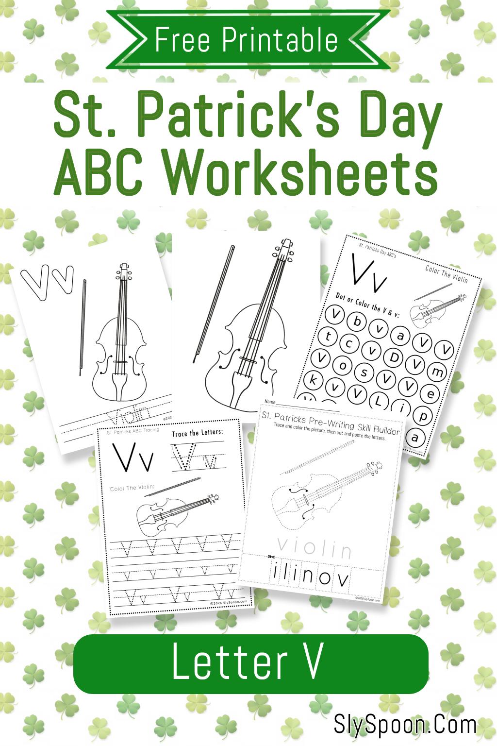 This post focuses on 5 free printable worksheets around the Letter V with a St. Patrick’s Day-themed violin illustration. Violins (often called fiddles in folk music) are commonly heard in Irish music, making them a natural and meaningful symbol for St. Patrick’s Day learning.