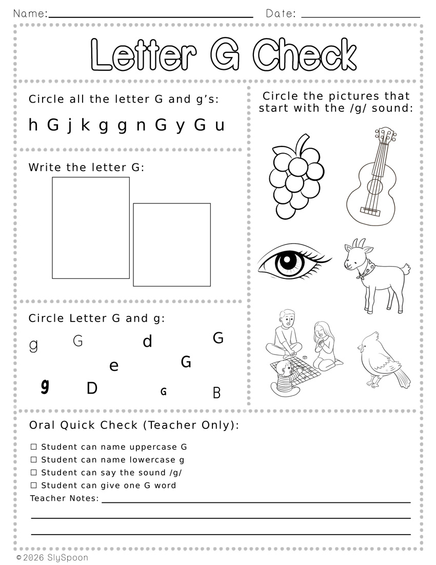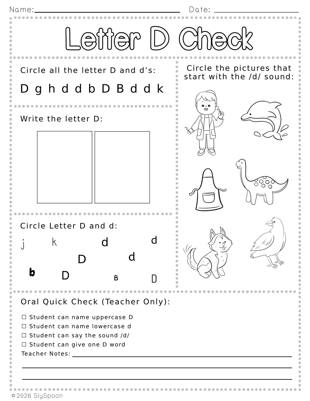 These Alphabet Letter Check Worksheets are designed to help children practice and demonstrate their understanding of letter recognition, letter formation, and beginning sounds in one simple, structured page.