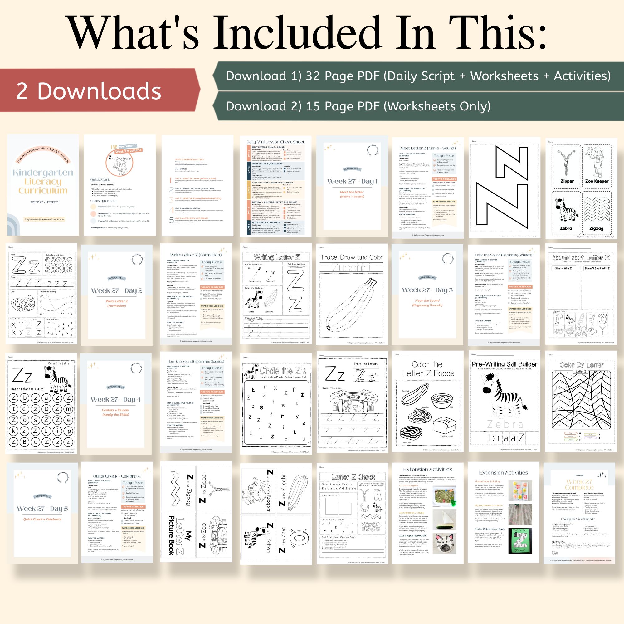 - 27 full curriculum units (Intro to Letters + A–Z), each including: