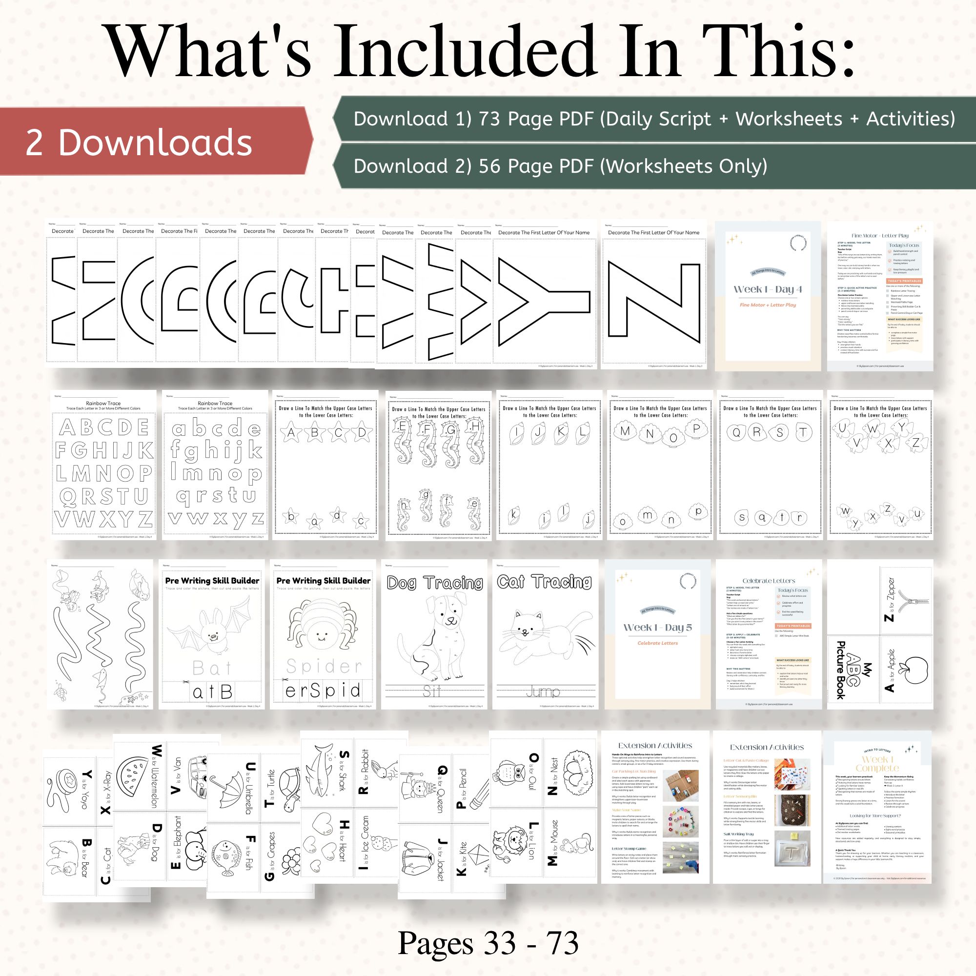 - Optional tracing, fine motor, and matching pages
